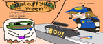 Halloween version of my PepeSelfConsciousAtPurseInLIDL emote. Uses a peepoween by eradicator in the background. https://7tv.app/emotes/01FHC434S80008T926GQR9T38R I made it :)